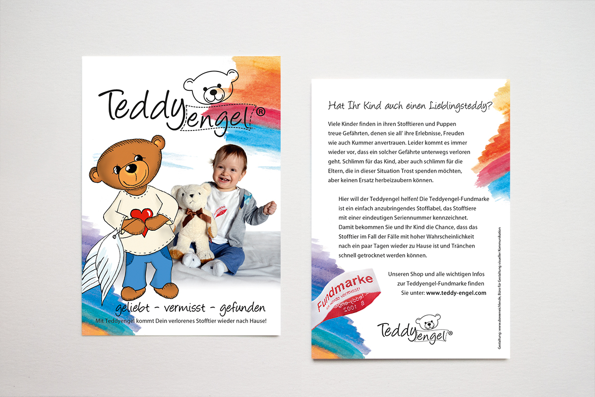 Für das Projekt illustrierte ich die Teddyengelfigur und entwickelte Flyer sowie Visitenkarten für Teddyengel.