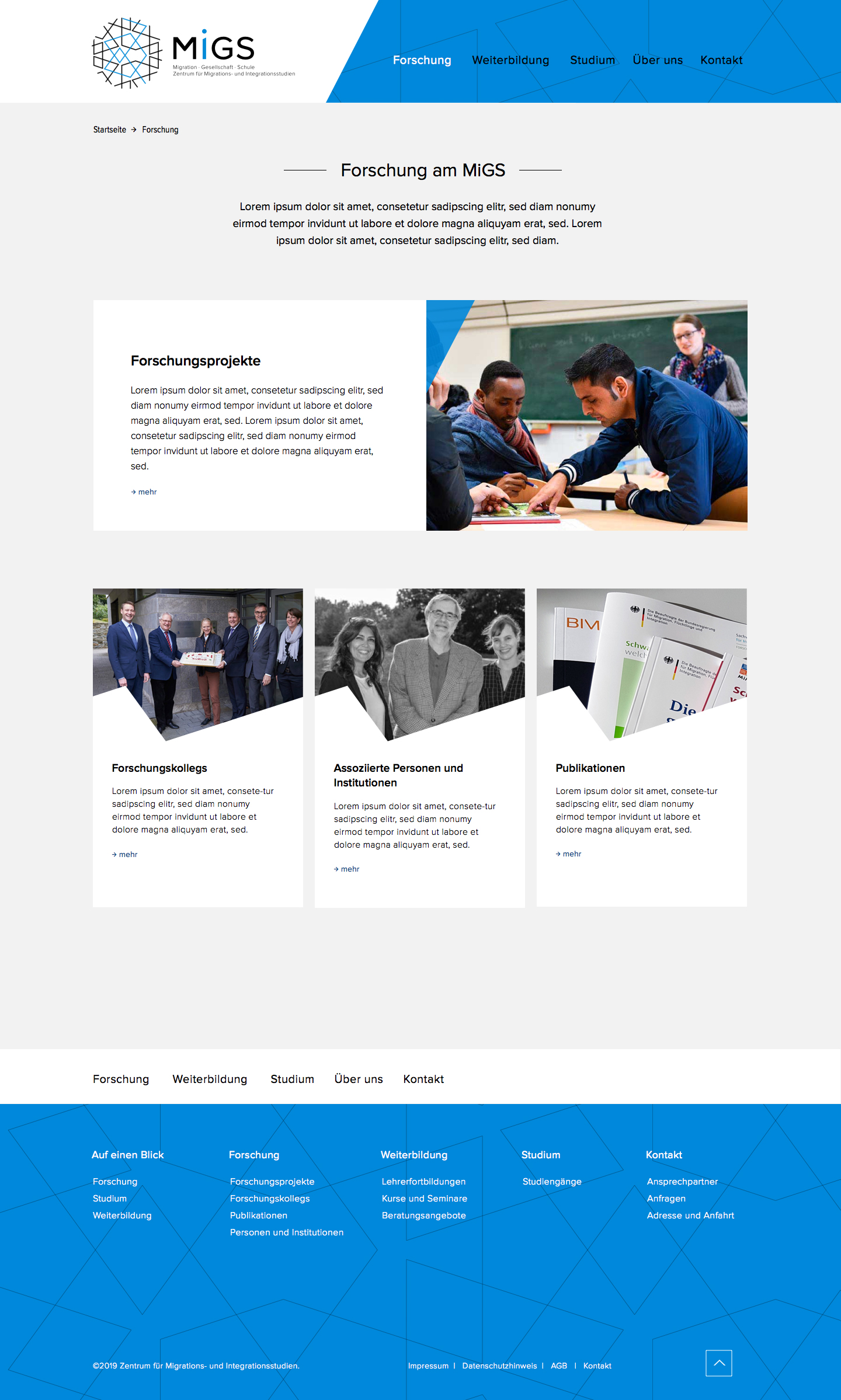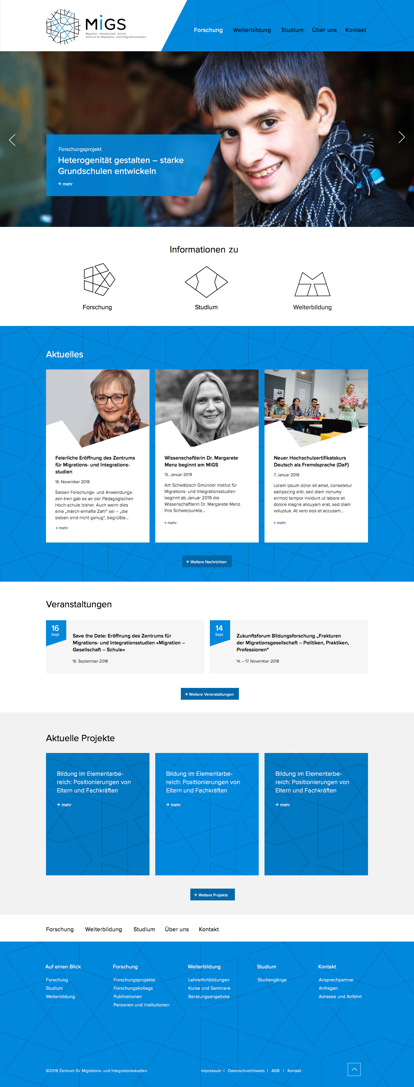 Basierend auf dieser Zielsetzung konzipierte und gestaltete ich in Zusammenarbeit mit dem Kunden das Online-Portal. Die Schwerpunkte Forschung, Studium und Weiterbildung wurden dabei zielgruppengerecht aufbereitet. Präsentiert werden unter anderem Informationen über aktuelle Forschungsprojekte, Studiengänge sowie Beratungs- und Weiterbildungsangebote.